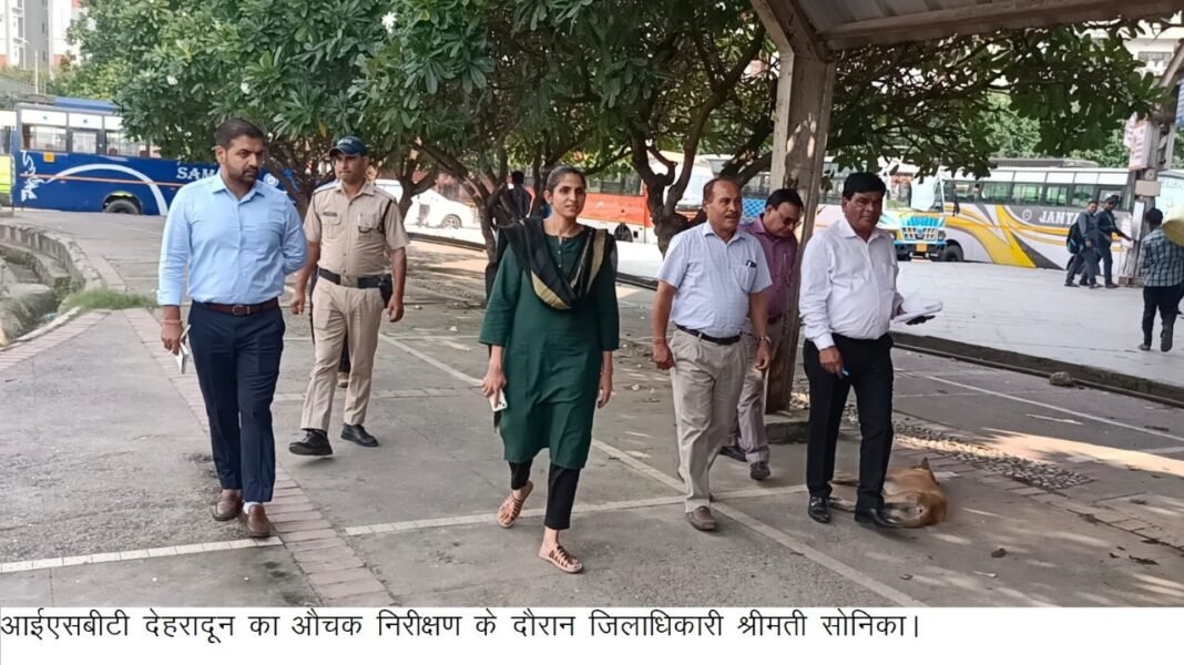 देहरादून । जिलाधिकारी सोनिका ने आज आईएसबीटी देहरादून का औचक निरीक्षण किया। निरीक्षण के दौरान जिलाधिकारी ने आईएसबीटी में अव्यवस्थाओं पर नाराजगी व्यक्त करते हुए अनुबंधित फर्म रेमकी के प्रबंधक को व्यवस्थाएं सुधारने के सख्त निर्देश दिए। साथ ही रंग-रोगन, मरम्मत एवं परिसर के भीतर निर्माण कार्यां को यथाशीघ्र शुरू न किए जाने पर निर्धारित प्राविधानों के अनुसार सख्त कार्यवाही किए जाने की चेतावनी दी। सफाई व्यवस्था में सुधार लाने के निर्देश दिए।