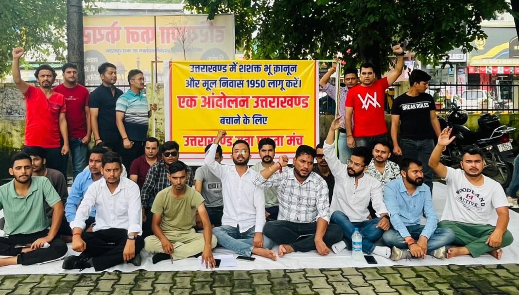 हल्द्वानी मैं उत्तराखंड युवा एकता मंच के बैनर तले विभिन्न सामाजिक व छात्र संगठनों से जुड़े लोगो ने हल्द्वानी बुद्ध पार्क मैं धरना देकर सरकार को आगाह किया कि अगर शीघ्र उत्तराखंड मैं भू कानून और मूल निवास 1950 लागू नही किया गया तो उत्तराखंड का युवा और मातृशक्ति सड़को पर उतरेगी। सभा को सम्बोधित करते हुए भूपेंद्र कोरंगा ने कहा कि इस उत्तराखंड की जमीने आज जिस प्रकार से बिक रही है उससे आने वाले समय मैं उत्तराखंड मैं बाहरी लोगों का एकाधिकार स्थापित हो जाएगा जिससे उत्तराखंड की सभ्यता संस्कर्ति प्रभावित होगी।