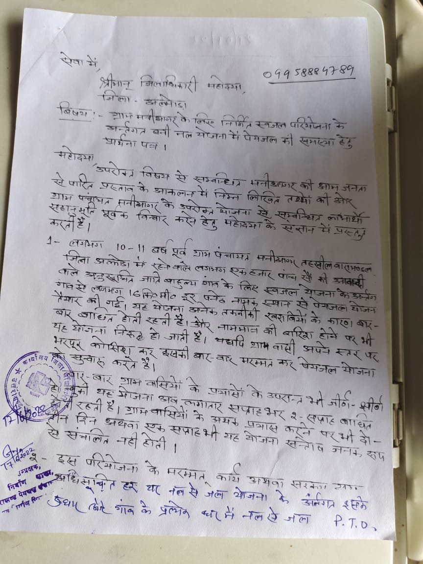 गांव के लोगों का कहना है कि इस गांव के सांसद और विधायक दोनों भाजपा के हैं और आज तक गांव की व्यवस्थाओं को लेकर और गांव की समस्याओं को लेकर इनकी ओर से एक बार भी गांव में भ्रमण नहीं किया गया है यहां तक कि बीजेपी ज़िला अध्यक्ष अनूसूचित मोर्चा वीरेंद्र कुमार आर्य द्वारा 30 लाख की योजना हड़पने के बाद हम लोग विरेंद्र कुमार द्वारा कराई जा रही 23 लाख की पानी की योजनाओं में अनियमितता के बारे में सांसद महोदय और विधायक महोदय और पूर्व डीएम अल्मोड़ा वंदना सिंह को भी पत्र लिख चुके हैं लेकिन सुनने वाला कोई नहीं है सांसद महोदय का यह नजदीक का गांव है और खुद हमारे सांसद अनुसूचित जाति का प्रतिनिधित्व करते हैं लेकिन इतना सब कुछ होने के बाद भी हमारे सांसद महोदय के द्वारा एक बार भी ये बात कही नही उठाई गई की क्यों नहीं आज तक यहां पानी के नल लगे,पिछले 5 सालों से हमारे सांसद महोदय कहां गुम है पता नहीं 52 परिवार आज भी बिना पानी के रह रहे हैं । कहने को यह गांव आदर्श गांव है लेकिन इसकी हालत ऐसी है कि हम कह नहीं सकते ना रास्ते हैं ना पानी के नल है और ना ही पीने के लिए स्वच्छ जल है । भाजपा के ही जिला अध्यक्ष अनुसूचित मोर्चा अल्मोड़ा वीरेंद्र कुमार आर्य ने पेयजल योजना के तहत लाखों की पानी की योजना हड़प डाली है लेकिन कोई सुनने वाला और कोई कहने वाला नहीं है ।