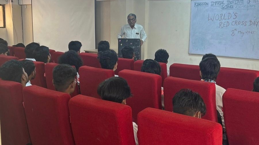देहरादून। देहरादून के डूंगा स्थित किंगस्टन इंपीरियल कॉलेज में वर्ल्ड रेडक्रॉस डे के अवसर पर जागरूकता कार्यक्रम का आयोजन किया गया जिसमें कॉलेज में पढ़ने वाले D .pharama, B.pharma फिजियोथैरेपी, बीएससी ओटीटी, बीएससी ऑप्टोमेट्री, BMlT,BPT,GNM,BSC Nursing,MMLT,MPT,BTech, होटल मैनेजमेंट,LLB,LLM, Mass communication के बच्चों ने और फैकल्टी मेंबर्स ने प्रतिभाग किया। इस मौके पर डॉयरेक्टर IQAC डॉ M.k.अरोड़ा और डायरेक्टर फार्मेसी किंगस्टन इंपीरियल कॉलेज डॉ झूमा समानता ने बच्चों को संबोधित किया और रेडक्रास सोसाइटी की स्थापना उसके उद्देश्य, जरूरत और वर्तमान परिस्थित में रेडक्रास सोसाइटी की महत्ता के बारे में बच्चों को बताया कि आज क्यों देश को रेडक्रास सोसाइटी की जरूरत है और कैसे रेडक्रास सोसाइटी देश के अंदर किन किन क्षेत्रों में काम कर सकतीं हैं। इस मौके पर हेड एकेडमिक सर्विसेस किंगस्टन इंपीरियल कॉलेज डॉ उमंग अहलावत, प्रिंसिपल लिब्रा लॉ कॉलेज डॉ शिव प्रकाश सिंह,वाइस प्रिंसिपल नर्सिंग प्रोफेसर नुजहत आलम, और किंगस्टन इंपीरियल कॉलेज के सभी फैकल्टी मेंबर्स मौजूद रहे।