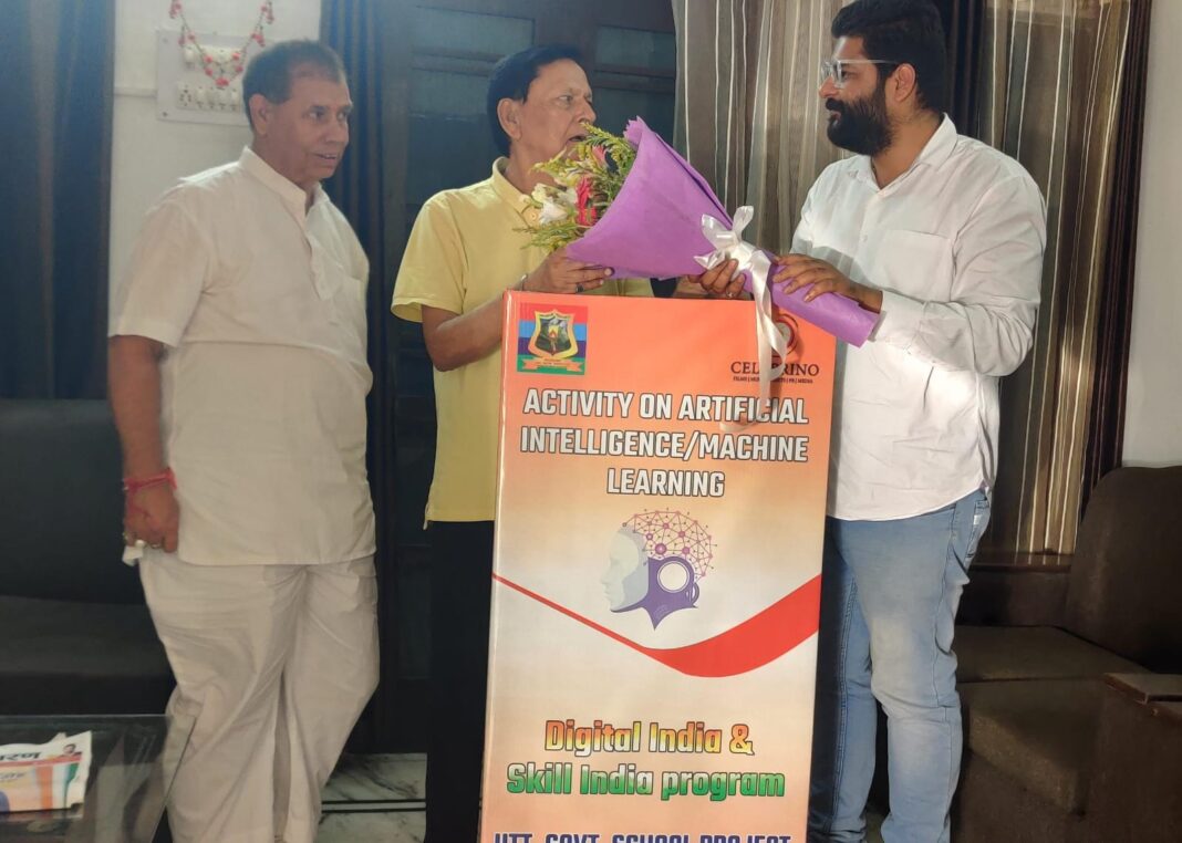 देहरादून। Celebrino के संस्थापक एवं रोशनी जन सेवा संस्थान के पूर्व उपाध्यक्ष ऋषभ वर्मा ने उत्तराखंड के पूर्व मंत्री एवं आईएनटीयूसी (INTUC) अध्यक्ष हीरा सिंह बिष्ट से भेंट कर आर.जे.एस.एस. (RJSS) एवं Celebrino द्वारा प्रदेश के सरकारी विद्यालयों में एआई/एमएल (Artificial Intelligence/Machine Learning) कार्यशालाओं के विस्तार पर चर्चा की । इस दौरान पूर्व कैबिनेट मंत्री हीरा सिंह बिष्ट ने ऋषभ वर्मा के कार्यों की प्रशंसा की और इस पहल की खुलकर सराहना की और इसे एक बहुत ही महत्वपूर्ण कदम बताया। उन्होंने कार्यशाला से जुड़ने की खुशी व्यक्त की और हर संभव सहयोग का आश्वासन देते हुए इसकी सफलता के लिए शुभकामनाएँ दीं।